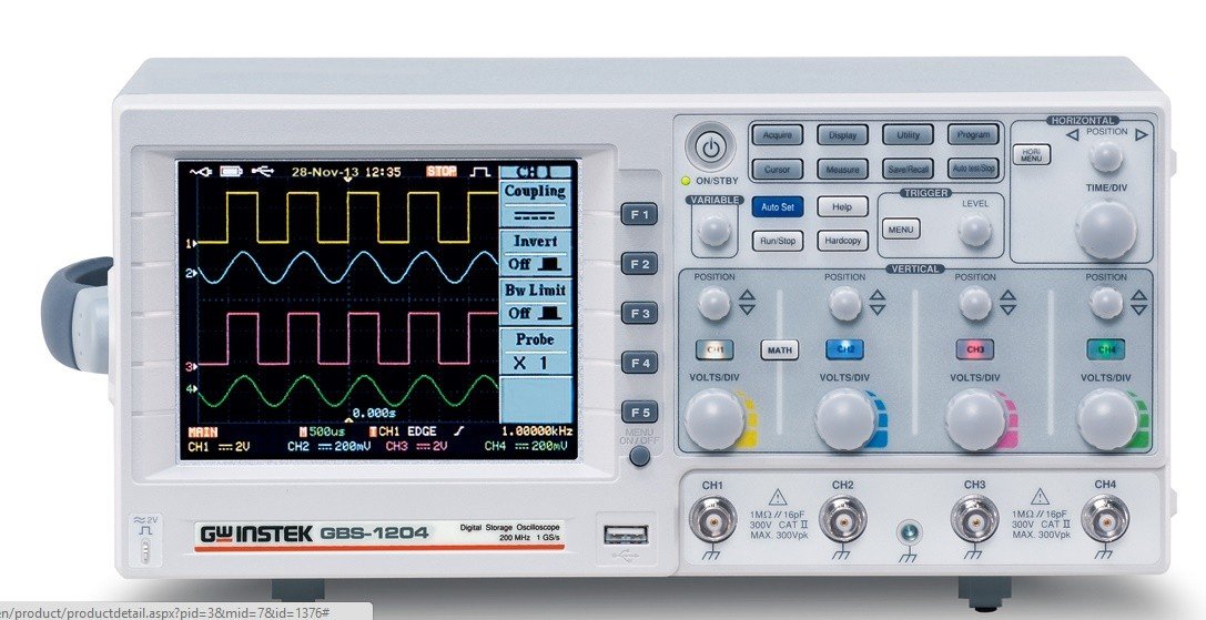 The GBS-1000 series, an economical selection of the four-channel DSO, offers three frequency ranges including 200,100, and 70MHz, real time sampling rate of 1 GSa/s, equivalent time sampling rate of 25GSa/s and 25k points memory depth.