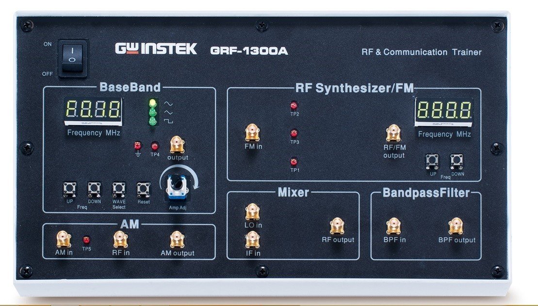 The brand new GRF-1300A RF training kit features not only all functions of GRF-1300 RF training kit but also augments itself with Mixer and Bandpass Filter. Users can better understand the characteristics of Mixer and Bandpass Filter by operating scalar network analyzer measurement which is produced by combining GSP-730 spectrum analyzer, GRF-1300A RF Communications Trainer, and USG signal generator.