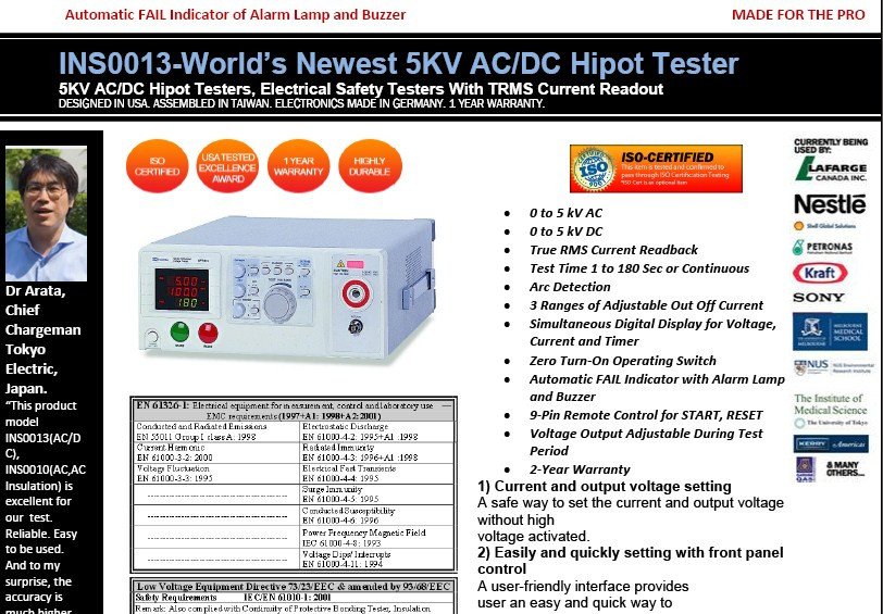 INS0013-5KV AC/DC HIPOT TESTER (0.2~5KV,0.3~100MA)
