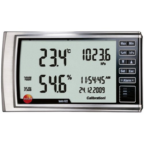 The Testo 622 Hygrometer with Pressure Display provides a precise measurement of temperature, humidity and pressure. In addition to temperature and humidity, the Testo 622 also measures pressure. The large, clear display provides all your important values at a glance, including current measurement values, date and time.