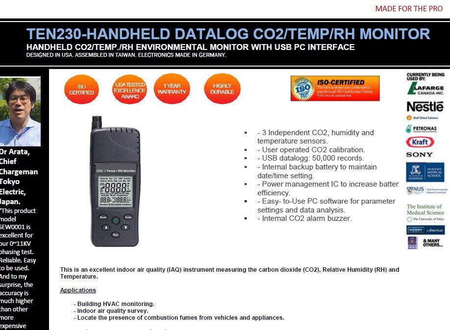 - Measures: Carbon dioxide in PPM, temperature (F or C), % Relative Humidity