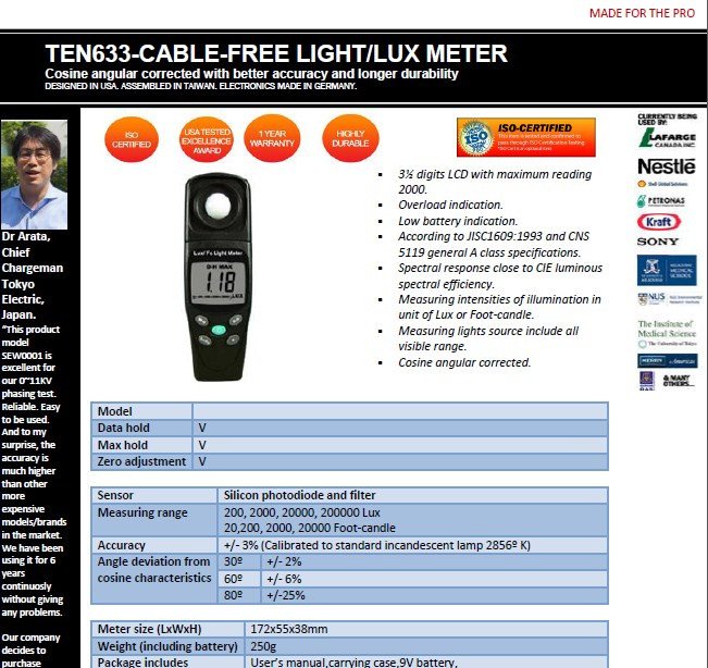 Featured item TEN633-CABLE-FREE LIGHT METER WITH ATTACHED DURABLE SENSOR